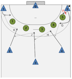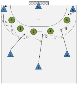 - The players should now implement the piston movement they practiced before in a 5-on-5 game.