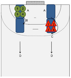 - The players step onto the mat in the front and repeat the course until they have crossed the finish line (D).