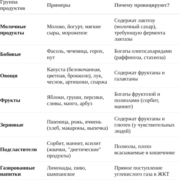 Практически любая пища может вызвать газообразование у кого-то. Но есть настоящие чемпионы в этом деле – продукты, богатые определенными типами углеводов (FODMAPs – Fermentable Oligo-, Di-, Monosaccharides And Polyols), которые плохо всасываются в тонком кишечнике и активно ферментируются бактериями в толстом: