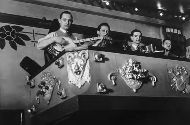 Джанго и Герино оставались на балконе всю ночь и играли музыку над облаками сигаретного дыма и в отблесках зеркального шара, висящего над залом. Герино, словно греческий бог на Олимпе, взирал сверху вниз на земную публику и покровительственно осыпал ее милостью в виде музыкальных гармоний. К аккордеонистам относились с царским почтением, в меньшей степени – к их аккомпаниаторам. Ветезе Герино и другие аккордеонисты украшали свои инструменты собственными именами, написанными разноцветными стразами и искусственными драгоценными камнями. Надписи сверкали и переливались в свете прожекторов. Кроме этого, каждый аккордеонист носил свой необычный и уникальный титул. С рекламных плакатов публику приглашали на бал-мюзет: Le Virtuose (Виртуоз), Le Celebre (Знаменитость), Le Beau (Красавец), Le Magicien de I'accordeon (Волшебник аккордеона) и далее в таком же стиле.
