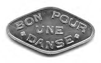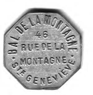 Женщин, следуя старым рыцарским обычаям, не обыскивали, что не мешало им пронести за подвязкой что-нибудь запрещенное. В большинстве танцзалов, особенно крупных, плата за вход деньгами не взималась. Вместо этого мужчины покупали жетон. Это была своеобразная танцевальная валюта. Каждый уважающий себя бал-мюзет чеканил свою валюту. Жетоны делали из алюминия или латуни, форма была самая разнообразная: треугольные, квадратные, шестигранные, многогранные, как бриллиант, либо круглые с зубчиками по окружности. На аверсе такой «монеты» было выбито название заведения, а на реверсе обязательной была надпись Bon pour une danse, что можно перевести как «на один танец», чтобы не было соблазна использовать жетоны как настоящие монеты. Хотя не исключено, что при столь популярном явлении, как бал-мюзет, жетоны могли быть использованы и в качестве денег. Жетон на один танец стоил пять сантимов.
