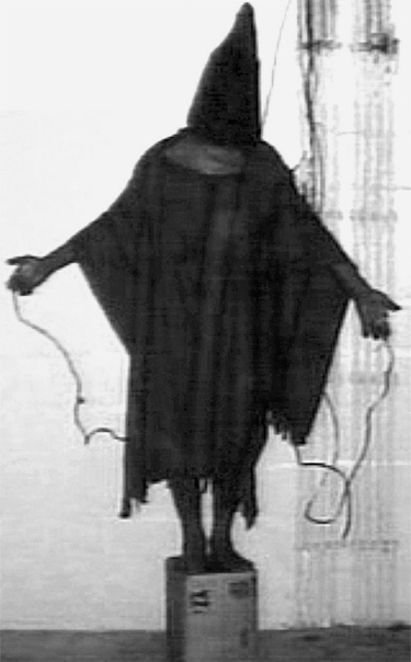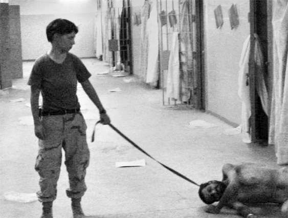 В 2004 г. телезрители и читатели газет по всему миру были потрясены фотографиями из тюрьмы в Абу-Грейбе, невдалеке от Багдада. Эта иракская тюрьма еще в годы правления Саддама Хусейна приобрела дурную славу из-за применявшихся в ней пыток и жестокого обращения с заключенными. Вот только на этот раз пытками занимались американцы. На одной из фотографий женщина-солдат держала на поводке обнаженного человека в ошейнике, который лежал перед ней, неспособный двигаться то ли из-за травм, то ли от страха. Были фотографии раздетых, лишенных человеческого достоинства узников, сложенных в живые пирамиды из голой плоти. На другом снимке был забившийся в угол человек, в лицо которому скалилась овчарка: солдат специально держал ее за поводок совсем близко к жертве. Страшнее всего, пожалуй, была фотография человека с мешком на голове, стоящего на ящике: его пенис и разведенные в стороны руки были привязаны проволокой.