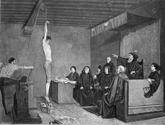 Для сакрального процесса пыток было важно, чтобы инквизитор не мучил жертву собственноручно, а также не впадал в ярость, нарушая таким образом таинство божественного правосудия.