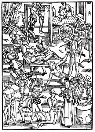 Показанное здесь кровавое зрелище – художественное преувеличение, но есть в этом изображении Германии начала XVI в. и доля правды. В религиозных распрях тех времен ненависть была столь сильна, что крайняя жестокость легко находила оправдание