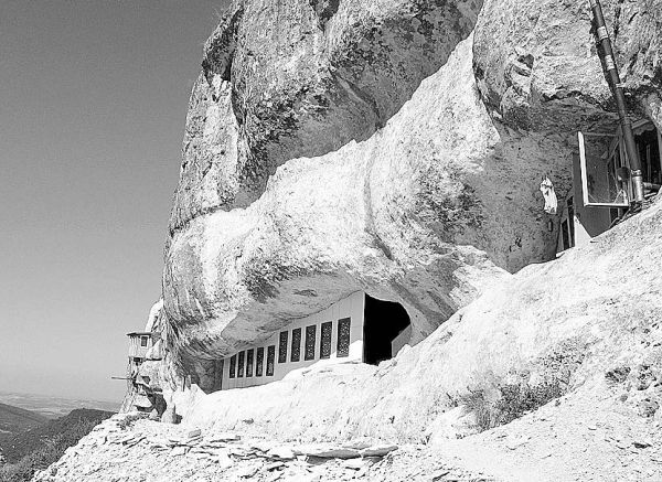 Рядом с Мангупом есть еще один памятник, сохранившийся со времен древнего Феодоро, – это остатки высеченного в скалах Успенского монастыря. Местные жители рассказывают, что некогда жил в местных горах огнедышащий змей, который похищал людей и скот. Люди боялись его, страдали и молились Пресвятой Богородице, чтобы она их от страшного змея освободила. И вот однажды путник увидел на скале горящую свечу. Он пошел на ее свет и увидел икону Божьей Матери, а рядом – издохшего змея. Поняли тогда горцы, что молитвы их услышаны, и в благодарность вырубили на том месте в скале первую церковь.