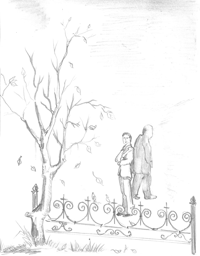 Стояла осень. На кладбище ветер беспорядочно кружил опавшие листья по мраморным плиткам. Здесь было очень много народу. Были мои родные, возможно все наши родственники. И незнакомые мне люди, которых я видел впервые. Все по очереди проходили мимо могилы и отдавали последнюю дань памяти умершему. Я не мог видеть кого хоронят, но с каждым человеком моя очередь подходила все ближе и ближе… Это были похороны отца.
