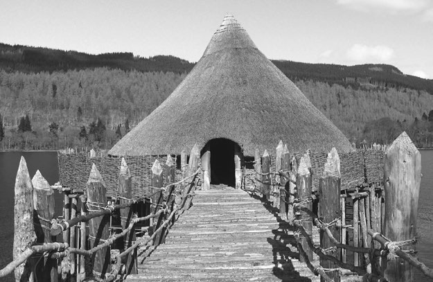 Многие общины, адаптируясь к сложным климатическим и природным условиям, практиковали полукочевой образ жизни: в холодное время года жили кучно в долинах, а летом перебирались на горные пастбища. Один из лучших источников наших сведений о материальной культуре тех мест, начиная с позднего железного века, – летние жилища элиты – кранноги, разбросанные по озерам нынешних Шотландии и Уэльса, а также знаменитые озерные деревни сомерсетских пустошей. Дома на сваях, соединенные с берегом деревянными мостками, построенные исключительно из органических материалов, прекрасно сохранились в анаэробной среде под водой после того, как были заброшены. Они дают поразительную картину жизни своих обитателей: постели и паразиты, инструменты и кухонная утварь позволяют судить о местном рационе и приемах ремесла, доказывая, что отсутствие дорогого стекла, роскошной керамики и каменных стен вовсе не обязательно свидетельствует о бедности – скорее об умелом использовании местных природных ресурсов.