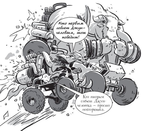 В отчаянии я оглядываюсь и вижу Дирка, Джека, Квинта и наших друзей-монстров. Все они гонятся за мной на БумКартах.