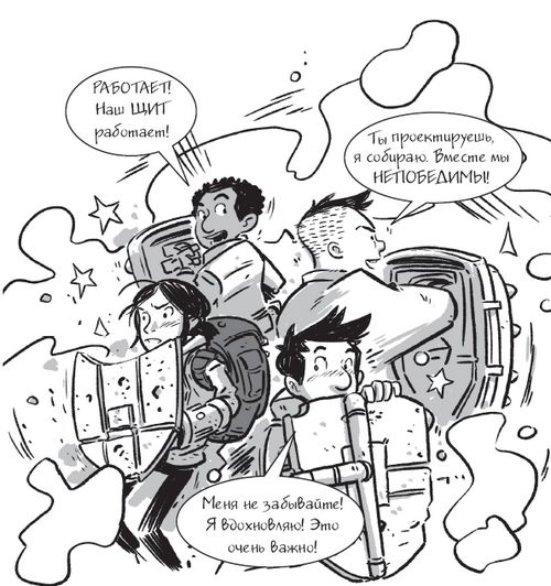 Молния на рюкзаке лопнула, и из него вылетел металлический щит! Он разложился на лету: элементы механизма разворачивались один за другим, пока не сложились в сплошную пластину-полумесяц.