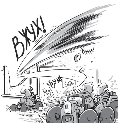 Монстры сталкивались, сбивали друг друга. Два БумКарта завертелись юлой, еще один едва не перевернулся.