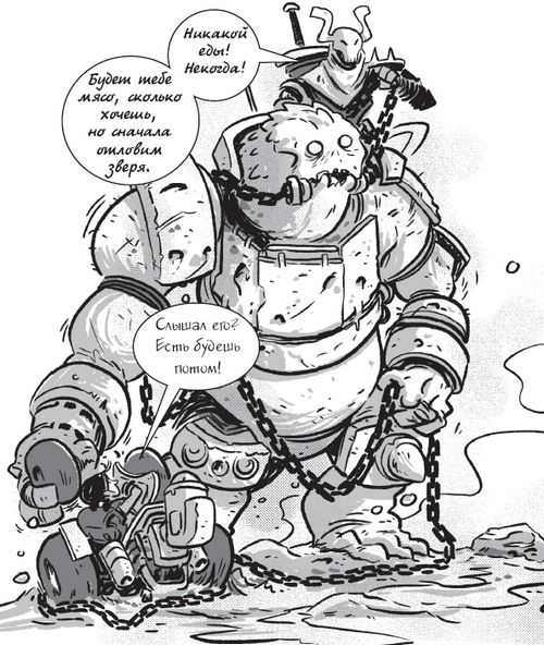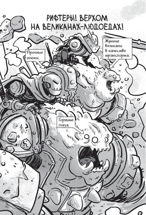 Великан недовольно рычит, но подчиняется. Оседлавший его рифтер, судя по всему, – главарь этой банды.
