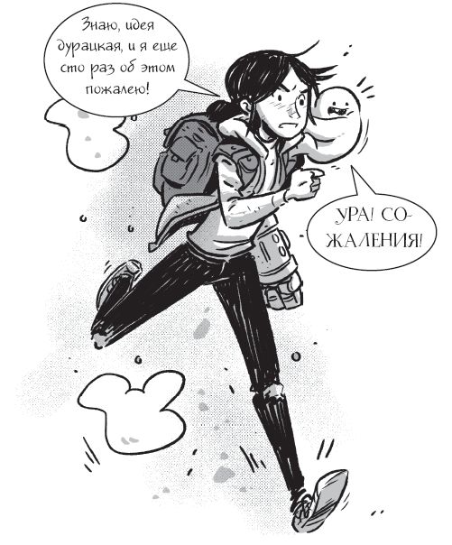 Мы, видимо, бежим по главной улице. Город выглядит так, словно на него напало стадо взбесившихся отбойных молотков: здания смяты и раскрошены. Будто какое-то вредное существо разобрало все на части, а потом попыталось собрать заново – но ничего не вышло.
