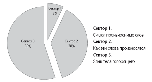 Около 40 лет назад профессор Меграбян [4], работавший инженером до того, как заинтересовался психологией, предположил, что при личном общении, особенно когда кто-то пытается понять ситуацию, есть три главных компонента:
