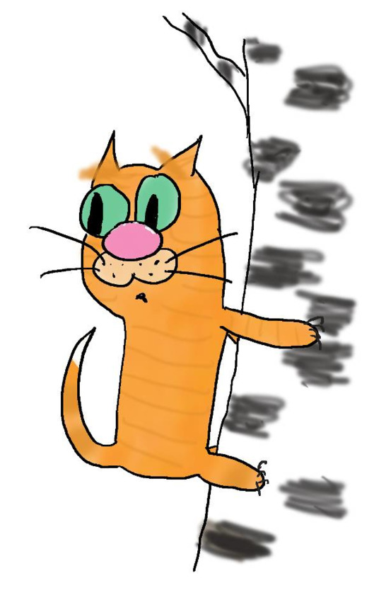 Котёнок хотел было приоткрыть глаз, да поглядеть, кто там такой подошёл к дереву, но вдруг лапы сами понесли его подальше от ствола. Нагнувшаяся ветка надрывно затрещала и… надломилась! Шнурок полетел вниз!.. Он раскрыл вдруг глаза, увидел приближающуюся землю, чью-то рыжую спину. Он заработал лапами, надеясь ухватиться за ствол дерева, но уж больно далёк тот был! И… Сам того не ожидая, Шнурок приземлился на все четыре лапы, как это умеют делать кошки!