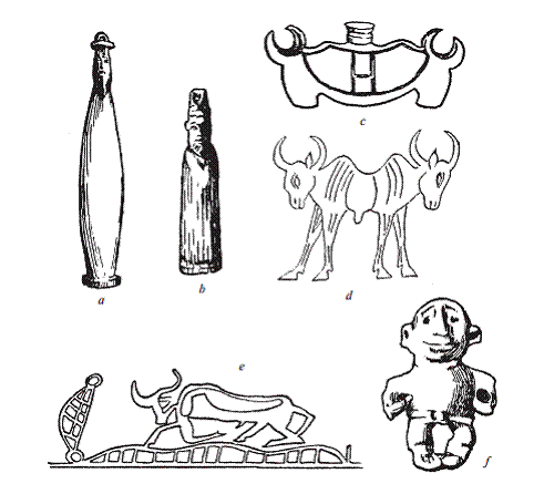 a, b – божество с птичьей головой(в основном использовали как амулет); c, d – двойной бык;
