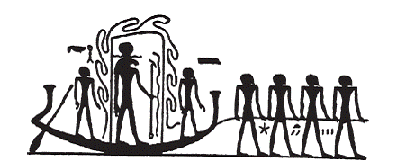 Рис 10. Бог-солнце ночью. Бога в его ладье с «Мудрецом» и «Волшебником» тащат «духи подземного мира»