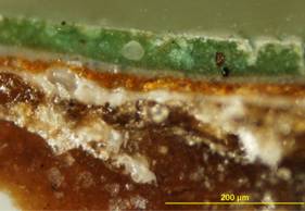 Просто взглянув на небольшой образец краски из картины под современным оптическим микроскопом, искусствоведы могут многое узнать о картине. С помощью оптического микроскопа, в частности стереомикроскопа, который позволяет получать трехмерные изображения, эксперт может детально изучить, как краска была нанесена на произведение искусства, и, в частности, увидеть, была ли краска добавлена намного позже: например, фальсификатор может добавить подпись Рембрандта к старой картине, которая на самом деле не принадлежит Рембрандту. Микроскопы также хороши для наблюдения за кракелюром, трещинами, которые появляются на старых картинах с течением времени. Кракелюр похож на отпечаток пальца старой картины: разные картины из разных стран, созданные в разное время, имеют разные рисунки кракелюра, и их невероятно трудно воспроизвести в подделке. Таким образом, под микроскопом искусствоведы могут определить, имеет ли картина правильную картину кракелюра. Если эти трещины отсутствуют или неверны, ученый знает, что у них подделка на руках.