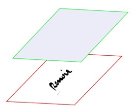 Подпись написана на листе бумаги, покрыв этот лист вторым листом бумаги (серого цвета), можно увидеть, что подпись видна через этот второй лист бумаги. Но её видимость значительно уменьшилась. Тот же самый эффект наблюдается с подписью, написанной на основании картины или написанной на одном из средних слоев картины, после чего данная подпись затем покрыта верхним слоем краски.