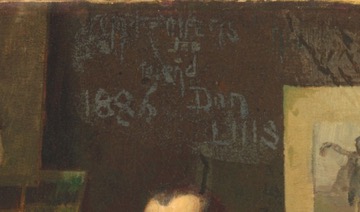 На изображении ниже – область картины, показывающая детали подписи и надписи от Томаса (Тома) Уильяма Робертса (1856-1931), Портрет Луи Абрахамса. Невнятно подписанный, посвященный и датированный «Том Робертс / для / друга / Дона Луиса / 1886» (над головой няни). Масло на холсте. 16 х 14 дюймов (40,6 х 35,6 см). Продано за 314 500 фунтов стерлингов 24 сентября 2015 года на Кристис в Лондоне.