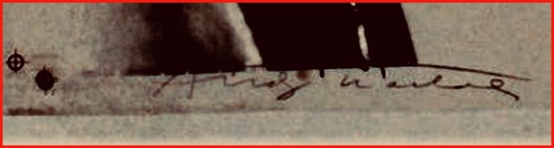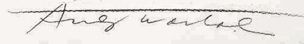 На изображении ниже – образец подлинной подписи Энди Уорхола (доступный из файлов интернет-архива) используется для сравнения подписи.