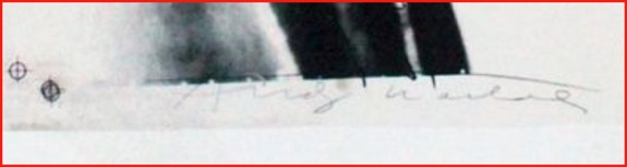 – в правом нижнем углу – подпись Энди Уорхола, которая плохо видна (отмечена красным прямоугольником)