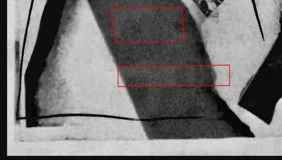 После того, как были проведены необходимые настройки яркости и контраста для цифрового изображения художественного произведения, мы можем идентифицировать скрытую информацию (в форме скрытых подписей, надписей и изображений, встроенных в художественное произведение).