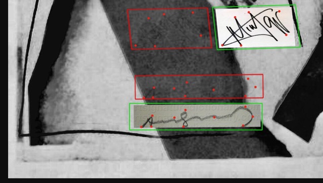 – Красные прямоугольники отмечают места, где контуры подписей стали видны.
