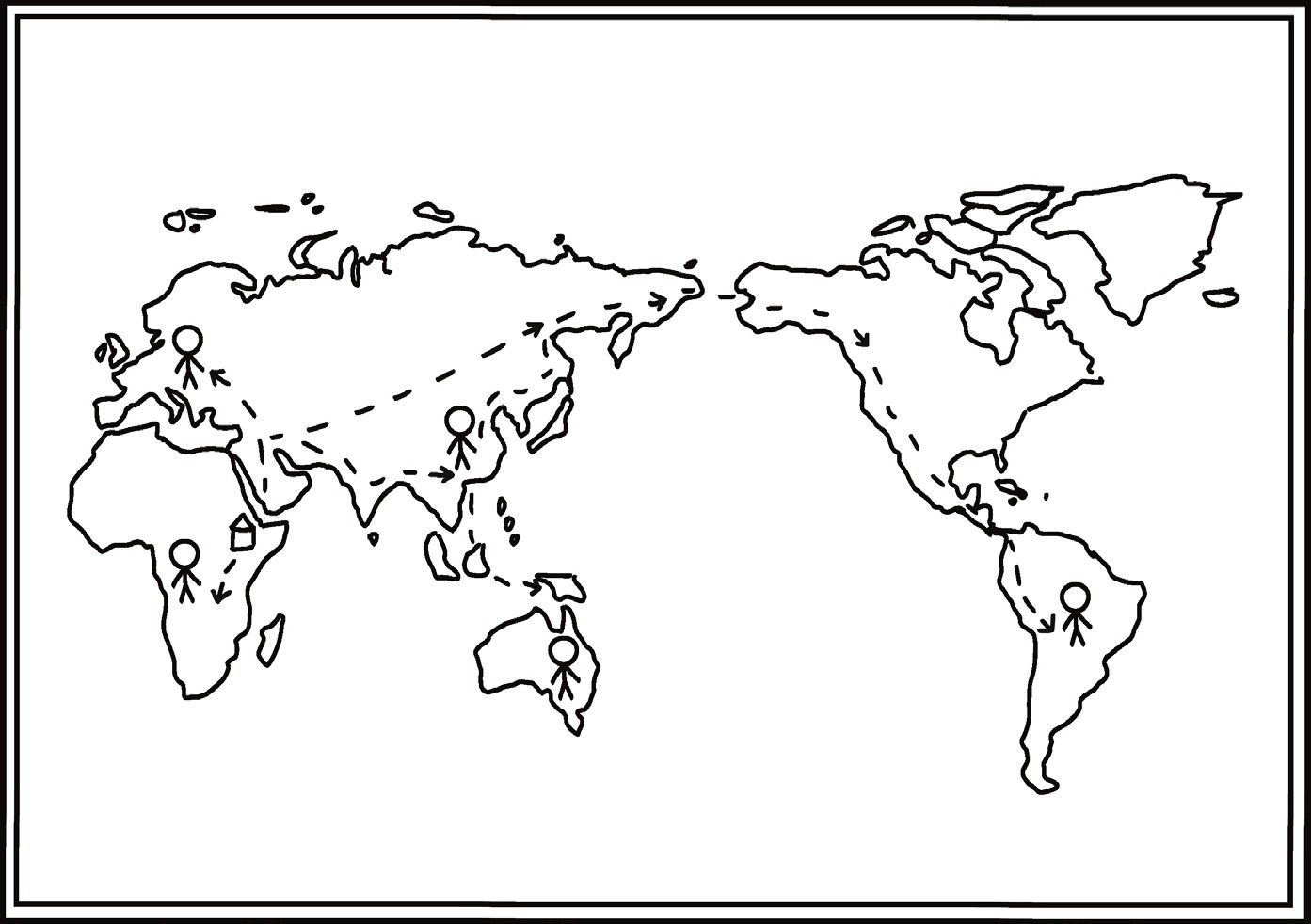 Homo sapiens вышел из Африки и отправился на покорение остальной суши. Но не тут-то было. 74 тысячи лет назад произошла катастрофа. На острове Суматра взорвался вулкан Тоба [53]. «Ну и что?» – скажете Вы, – «Каждый год где-нибудь извергается вулкан, зачем из-за этого панику разводить?» В 1815 году произошло извержение вулкана Тамбора. Погибли 70 000 человек, а 1816 год был таким холодным, что был прозван «годом без лета». Извержение Тобы было раз в 20 сильнее. Малайзию накрыло 9-метровым слоем вулканического пепла, Индию – 6-метровым. Зима продлилась шесть лет. Естественно, что в непосредственной близости от вулкана всё живое погибло. Но и на остальной планете от шестилетней зимы жить стало невыносимо. Человечество уменьшилось до нескольких тысяч мужчин и женщин. Всё неафриканское население Земли произошло от этой небольшой горстки счастливчиков, переживших извержение Тобы. Возможно, одной из причин вымирания неандертальцев также стало изменение климата после извержения вулкана [93]. Позже Вы убедитесь, что вулканы ещё ни раз сыграют значительную роль в истории человечества. После упомянутых событий освоение планеты людьми продолжилось, несмотря на суровые условия ледникового периода. К концу Плейстоцена – началу Голоцена все континенты (кроме Антарктиды) были уже заселены.