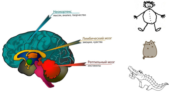 – Внутренний крокодил отвечает за быстрое мышление по Канеману – автоматические реакции и привычные действия