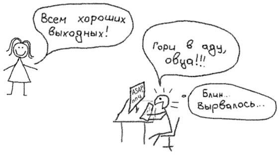 Рой Баумайстер в своих экспериментах показал, что простая задача – удержать в голове шесть цифр – существенно уменьшает возможность мыслить и контролировать себя. Наверняка вы можете вспомнить, что в те моменты, когда во время работы вам надо было одновременно удерживать в голове много разной информации, вы резче обычного реагировали, если коллеги пытались вас отвлечь. Для того чтобы сдержать грубость, тоже нужно мыслетопливо, а если оно практически полностью уходит на запоминание кучи цифр при составлении недельного отчета, то даже невинный на первый взгляд вопрос может вызвать изрядный поток сквернословия. Это нормально. Не в том смысле, что общество относится к этому терпимо (на вас за это могут справедливо обидеться), но эта реакция естественна для людей, так же как естественно для нас отдернуть руку (возможно, выругавшись) от горячего предмета.