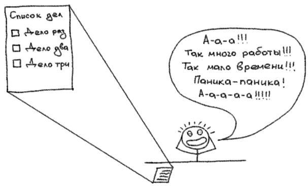 В особо тяжелых случаях у человека формируется список дел такого размера, что все, на что он остается способен, – это паниковать, сокрушаться о нехватке времени и расставлять приоритеты (что с точки зрения пользы для дела, по сути, одно и то же).