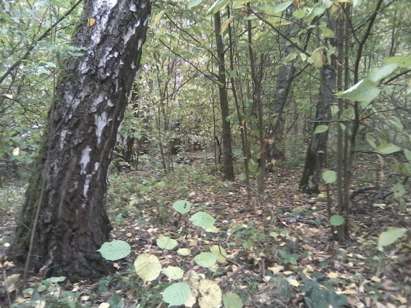 9 апреля 2014 года, по воспоминаниям осени 2009 года.На фотографии осенний лес в окрестностях посёлка Рязановский Московской области