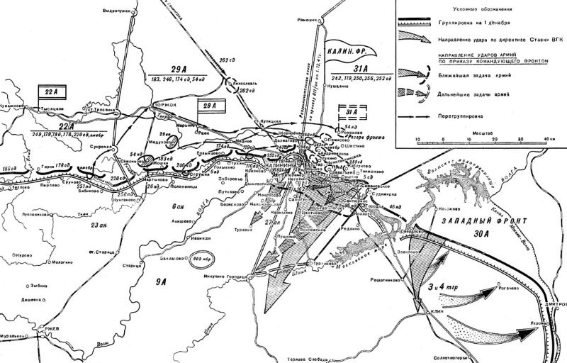 «Калининскому фронту, сосредоточив в течение ближайших двух-трех дней ударную группировку в составе не менее пяти-шести сд, нанести удар с фронта (иск.) Калинин, (иск.) Судимирка в направлении Микулино Городище и Тургиново. Задача: выходом на тылы клинской группировки противника содействовать уничтожению последней войсками Западного фронта».