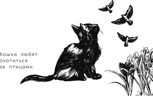 А кошка сидит на земле, счищая с лапы воробьихины перья, смотрит на них – рыжая, зелёные глаза – и сожалительно мяукает: