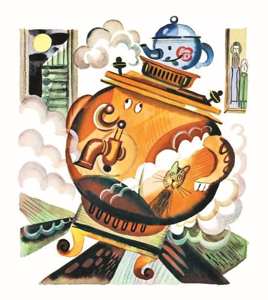 Так они́ о́ба всё кипе́ли и кипе́ли, меша́я спать всем, кто был на столе́. Ча́йник дра́знит: