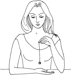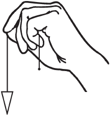 Нить маятника держите за утолщенный конец большим и указательным пальцами, сильно не сжимая. Если несколько раз спокойно и глубоко вдохнуть, можно быстро сбросить остатки напряжения в плечах и спине и исключить онемение рук.