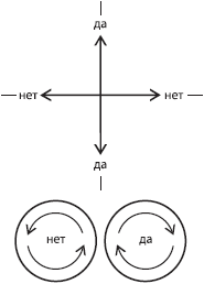 Например, «Да» – вертикальные колебания, «Нет» – горизонтальные, «Не могу ответить» – против часовой стрелки, «Не хочу отвечать» (если высший разум полагает, что вам лучше этого не знать) – по часовой стрелке.