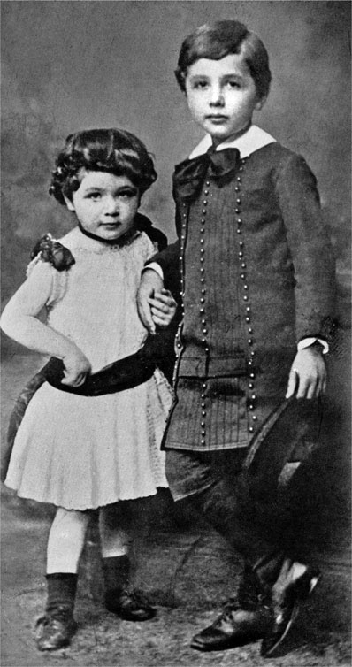Одна из самых ранних фотографий А. Эйнштейна – ему примерно 5 лет. Он запечатлен с младшей сестрой Майей.