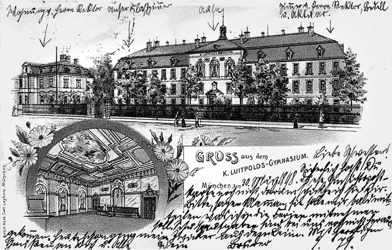 Открытка с изображением Луитпольдовской гимназии, где учился А. Эйнштейн. 1898 г.