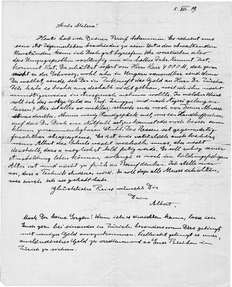 Письмо А. Эйнштейна Милеве, где он сообщает ей об условиях развода. 5 декабря 1919 г.