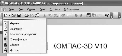 При выборе типа создаваемого файла можно также обойтись без вызова диалогового окна Новый документ. Для этого стоит воспользоваться раскрывающимся списком Создать новый документ на панели инструментов Стандартная (рис. 1.3). Для вызова этого списка нужно щелкнуть на маленькой кнопке с черным треугольником, направленным вниз.