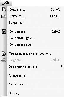 Команды меню Файл не изменяются в зависимости от типа документа. Это первый пункт главного меню (рис. 1.7).