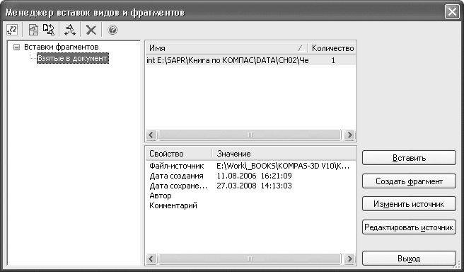 Рис. 1.9. Диалоговое окно Менеджер вставок видов и фрагментов