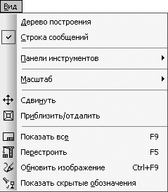 Меню Вид при активном графическом документеМеню Вид при активном графическом документе содержит команды, позволяющие управлять видом главного окна приложения и видом представления данных в окне графического документа (рис. 1.11).