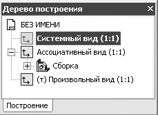 • Дерево построения – окно древовидного представления этапов построения модели (детали, сборки) или чертежа. Этот элемент управления показывает порядок формирования пользователем данных документа, а также иерархические связи между элементами чертежа или трехмерными операциями, формирующими модель. Дерево построения позволяет легко перемещаться по документу, что существенно упрощает его редактирование.
