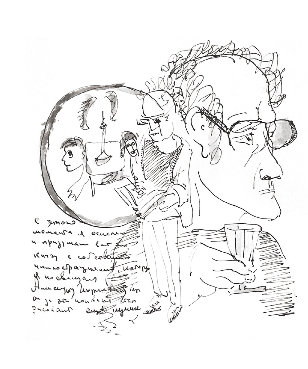 И я придумал вот эту книгу. С собственными иллюстрациями, которую посвящаю Александру Георгиевичу. Он за эти полвека стал рисовать еще лучше. Более того, я надеюсь, что мой папа, которому я тоже посвящаю эту книгу, всё же не пристыдит меня вновь. А мой сын Роман удостаивается особой благодарности, поскольку на этапе накопления материала призывал рисовать меня по вечерам и садился рядом со мной с карандашом.