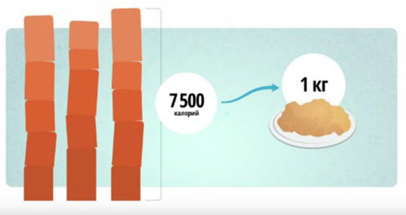 Какой дефицит калорий необходимо накопить, чтобы потерять 1 кг веса? Теперь вы можете примерно прикинуть это сами – 1 кг чистого жира это около 9300 ккал (как вы помните, в каждом грамме жира – 9,3 ккал).