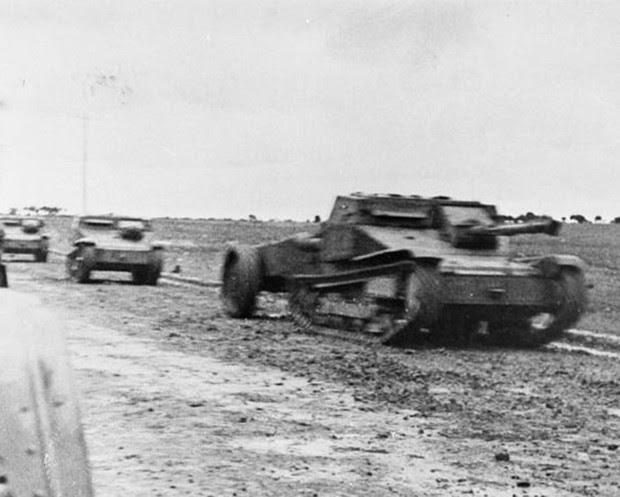 Внезапно они заметили восемь приближающихся черных точек, в бинокль оказавшихся итальянскими танкетками Carro CV3/33 “Ансальди”.