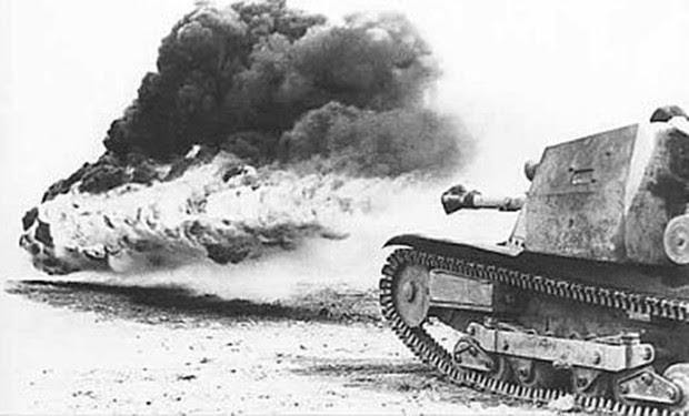 Все, кроме одного. Этот “Ансальди”, в котором, скорее всего, сидел командир итальянской группы, шёл на командирский Т-26, в котором сидел Арман. Он только что подбил своего второго “Ансальди” и, пока перезаряжался, быстрая танкетка оказалась совсем рядом. Метров с 20 она неожиданно полыхнула на танк струей пламени. “Ансальди” оказался огнемётным.