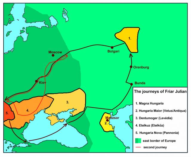 А еще ученым неизвестно, что, собственно, за Hungaria Magna нашел Юлиан в XIII веке в двух конных переходах на восток от Поволжья? Никакой Великой Венгрии там местная история не помнит.